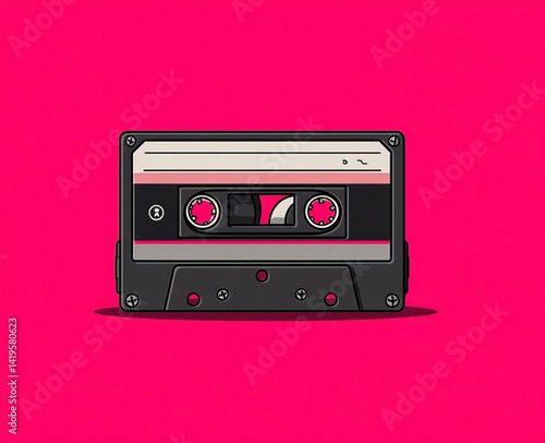 © Javid, Obraz premium Flat graphics of retro cassette tapes on vibrant backgrounds. AI generated image