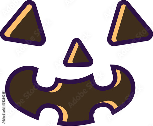 Fototapeta premium Flat Halloween pumpkin is showing triangular eyes, nose and jagged mouth on...