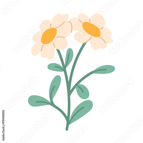 © Sonika, Naklejka premium Flat hand drawn daisies on white background. Wildflower isolated. Vector floral element