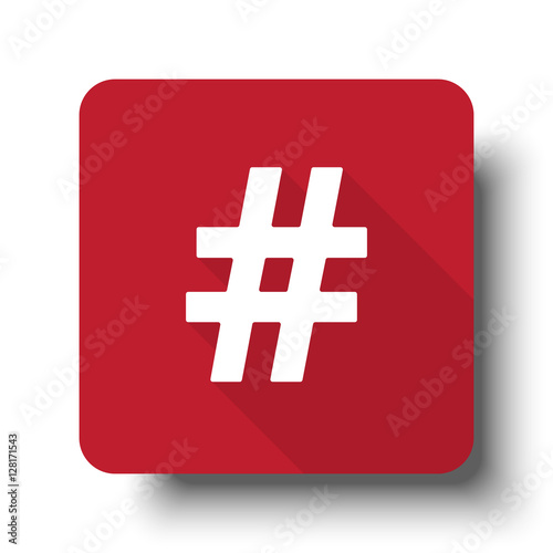 Obraz premium Flat Hashtag web icon on red button with drop shadow