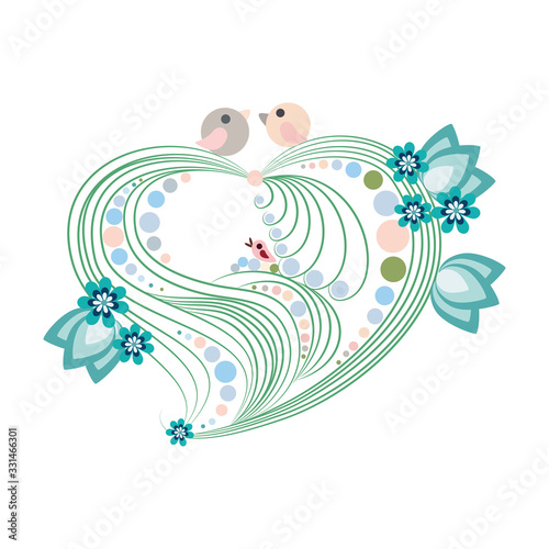 © rivere3, Obraz premium flat heart and birds, design element, flat background