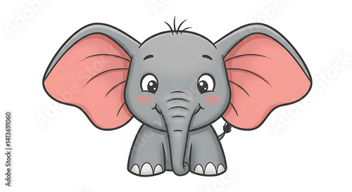 © Jotta4, Fototapeta premium Flat icon of a baby elephant with oversized ears and a gentle smile, animated look on a clean white background