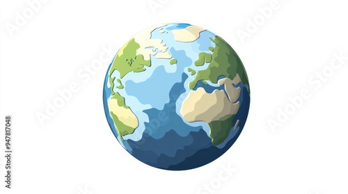 Fototapeta premium Flat Icon of Globe Planet Atmosphere in 3D Cartoon Rendering on White Background