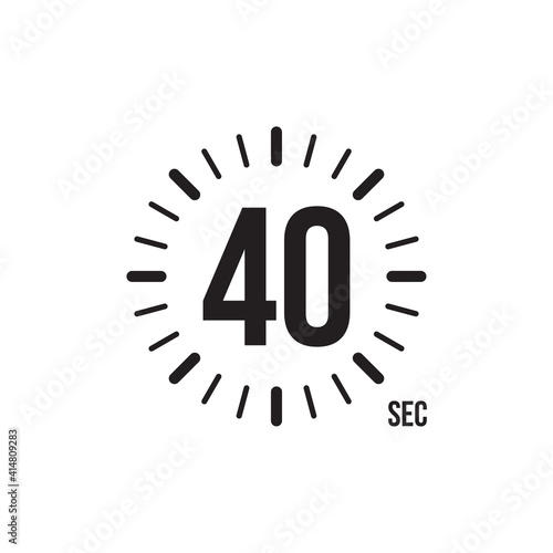 © CreativeEhvan, Fototapeta premium Flat icon with black timer 40 seconds. Flat vector illustration. Time icon symbol illustration. Vector stopwatch icon. Vector illustration graphic design.
