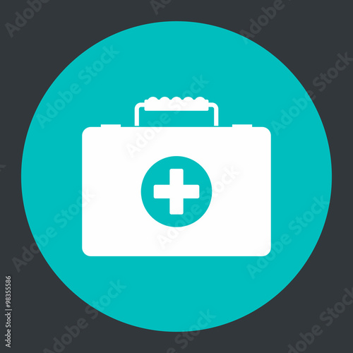 © Hito4i, Fototapeta premium Flat icon with medical suitcase on a color background
