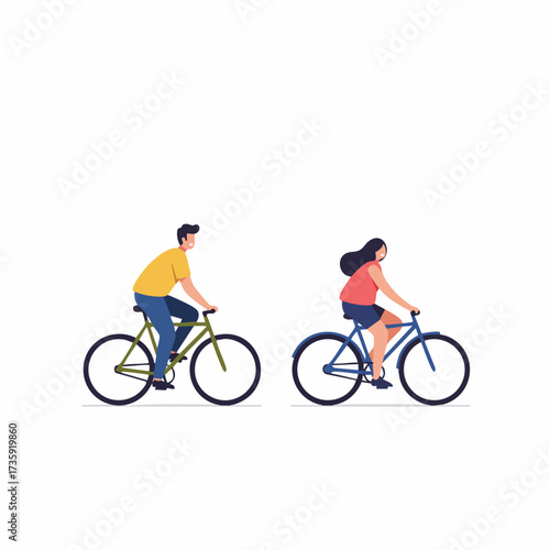 Fototapeta premium Flat Illustration Couple Riding Bicycle Enjoying Outdoor Activity Together