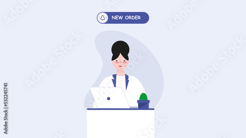 Obraz premium Flat illustration of a medical worker who received a new order. This illustration can be used in online services.