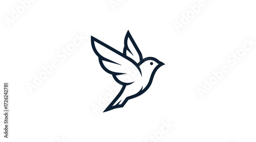 © ZiletterId, Obraz premium Flat illustration of a simple white bird flying with dark outline
