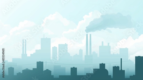 Fototapeta premium Flat illustration of air pollution, Silhouette of an industrial city skyline with smoke in the morning.