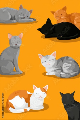 © Laviender, Fototapeta premium Flat Illustration of Playful Cats in Minimal Geometric Style