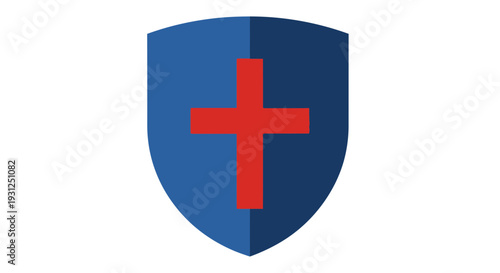 © Abdullah, Fototapeta premium Flat Illustration Shield Badge With Cross Two Colors