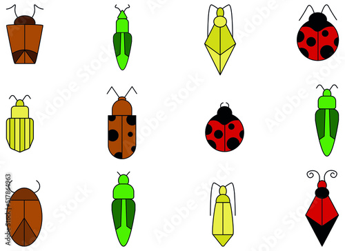 © Olivia23, Fototapeta premium Flat Insect bug vector set. Set of black outline silhouettes of bugs vectors. Vector black and white icons of different insects