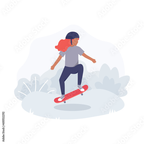 © Dmytro, Obraz premium Flat isolated girl riding skateboard.