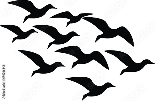 Obraz premium Flat Isometric Vector of Flying Bird Silhouettes – Minimalist Black and White...