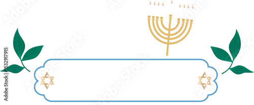 Obraz premium Flat label is showing gold menorah, candles, stars and sprigs on transparent...