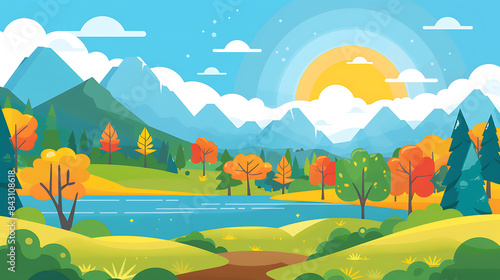 © 梦洁 何, Fototapeta premium flat landscape illustration