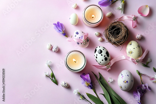 Obraz premium flat-lay arrangement of Easter decorations