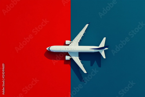 © Digital Sensei, Fototapeta premium Flat lay design of a white plane isolated on a colorful background