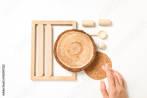 © Atlas, Fototapeta premium Flat lay of creative moodboard composition, top view