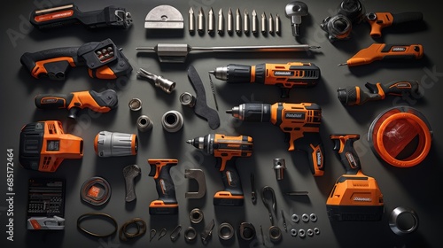 Fototapeta premium flat lay of engineer mechanic power tools on the table