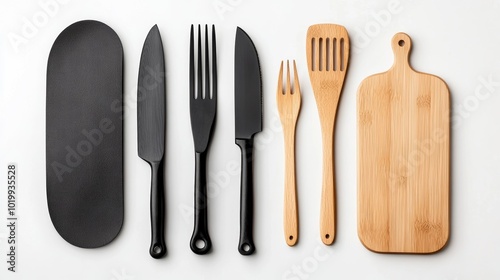 Fototapeta premium Flat Lay of Kitchen Utensils and Cutting Board