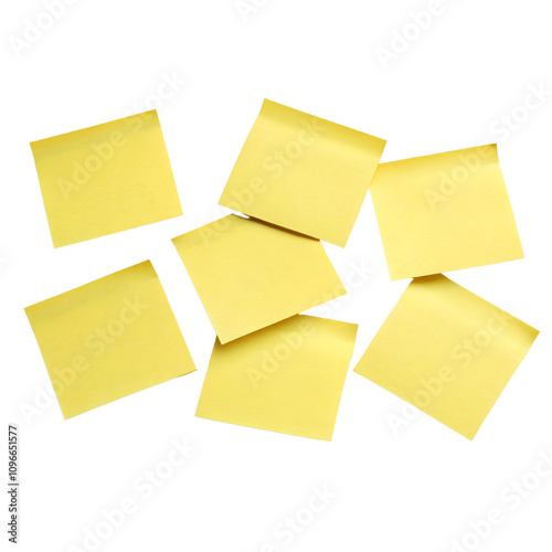 Fototapeta premium Flat Lay of Yellow Sticky Notes Isolate On Transparent Background Cutout, PNG...