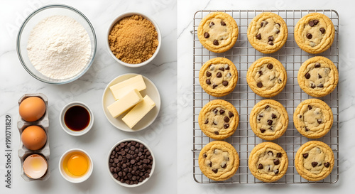 © AHW, Obraz premium Flat lay with raw materials + finished products