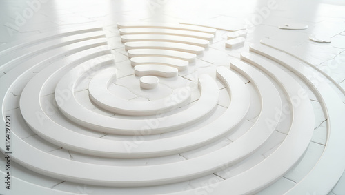 © Netaya, Obraz premium Flat Layer Concentric Circuit Arcs on Minimal White Tile: Bold Metallic Lines & Radial Microchip Forms for a Clean, Complex Look in Corporate Communication - Cute Vector Illustration for Smart Busines