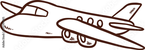 © vectorfusionart, Naklejka premium Flat line art passenger airplane floating on transparent background with swept wings and engines