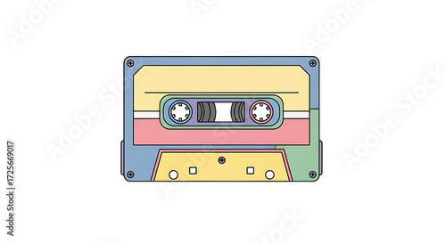 Obraz premium Flat Line Art Pastel Colored Audio Cassette Tape Musical Illustration