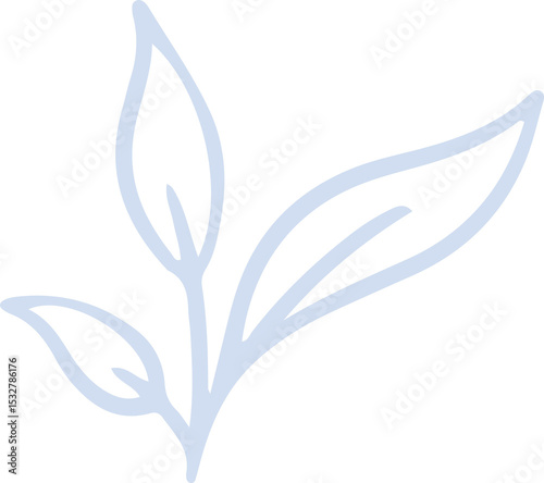 Obraz premium Flat line art showing pale blue sprout with three leaves on transparent background