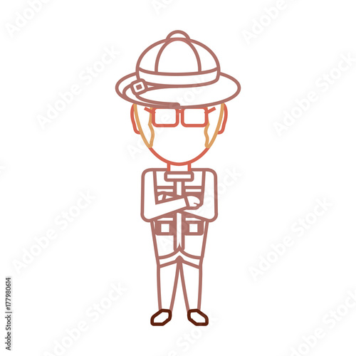 © djvstock, Fototapeta premium flat line colored safari man over white background vector illustration