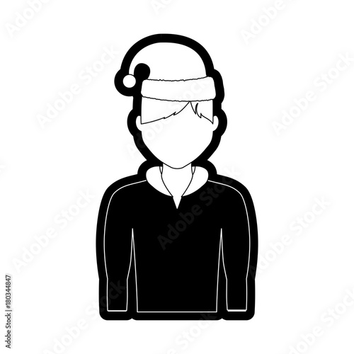 Fototapeta premium flat line monochromatic man with santa hat over white background vector illustration