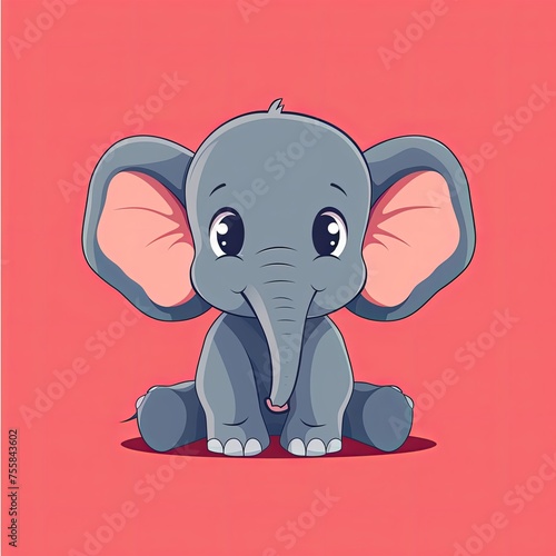 © Animal Kingdom, Naklejka premium Flat logo of sweet baby elephant with a trunk up lovely little animal 3d cartoon character