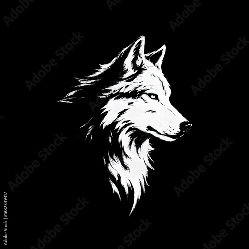 © john, Naklejka premium Flat logo wolf hand drawn tyle on a black background Hand Drawn style.