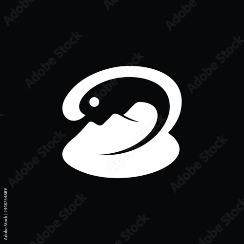 © vstudio99, Obraz premium Flat modern smooth B leaf mountain fish logo