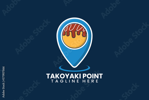 Fototapeta premium Flat modern takoyaki pin point logo template vector illustration
