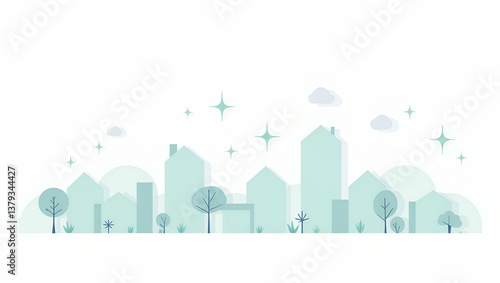 © HaJung, Fototapeta premium Flat Modern Wallpaper Background: Abstract Digital Motifs for Net Positive Energy Homes - Expansive Space for Text Annotations on Sustainable Building Design & Eco-Friendly Solutions
