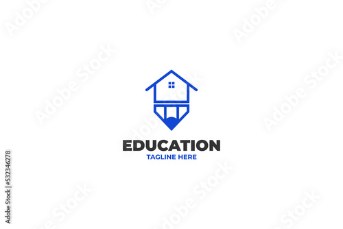 © Brandingasik, Fototapeta premium Flat pencil with home logo design vector template