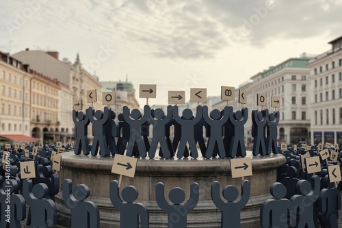 Obraz premium Flat Pictogram Protest – Symbolic Demonstration in Real Urban Square