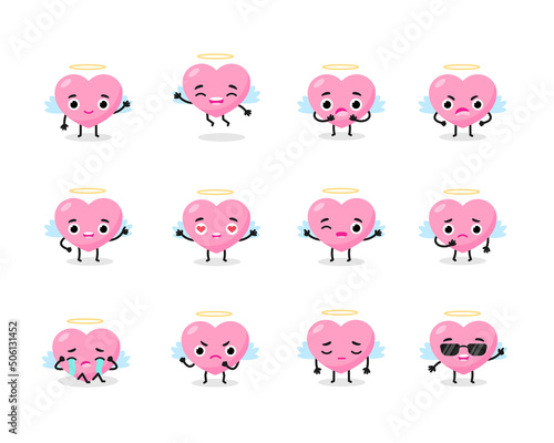© Kristina Chistiakova, Fototapeta premium Flat pink collection emotions angel heart head face with wings.