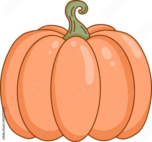 © vectorfusionart, Naklejka premium Flat pumpkin gourd is floating on transparent background, showing segmented body and curly stem