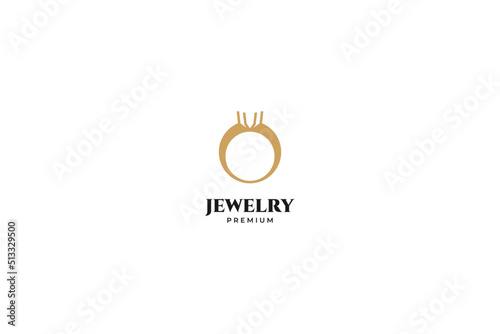 © Brandingasik, Fototapeta premium Flat ring jewelry logo vector icon design template. Elegant, beauty, royal