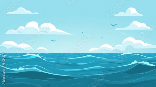 © MetaPixel, Fototapeta premium Flat sea background illustration in a cartoon style