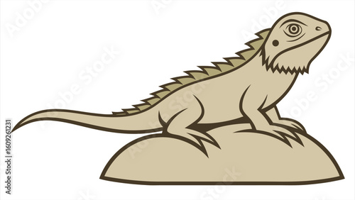 Obraz premium Flat silhouette of a bearded dragon on rock earth.