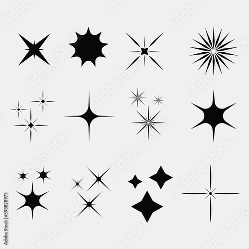 Obraz premium Flat Sparkling Star Collection Vectors with Star Symbols and Shine Illustrations