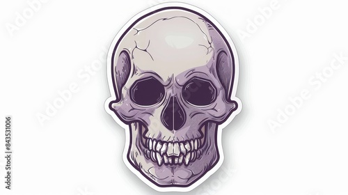 Fototapeta premium flat sticker design, human skul, death, thick bold white outline, white...