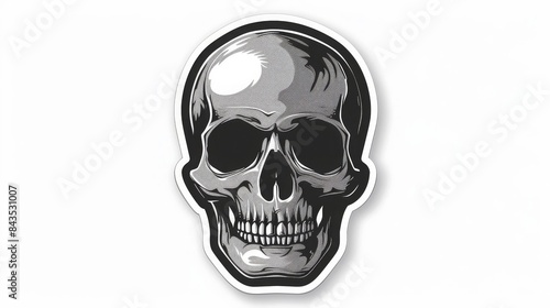 Fototapeta premium flat sticker design, human skul, death, thick bold white outline, white...