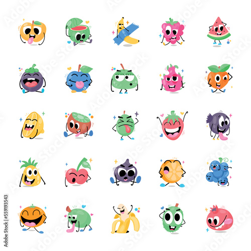 © Vectors Market, Obraz premium Flat Stickers of Food and Fruits