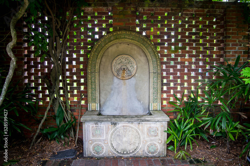© Jazmine, Obraz premium Flat stone fountain in a garden